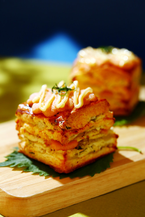 明太子素來是百搭的食材,我們將其巧妙融入鬆餅之中,瞬間提升了整體的風味層次。此外,我們加入焗薯,增添了豐富的水分,令鬆餅變得更濕潤柔軟之餘,焗薯的綿密質地與鬆餅的輕盈形成了迷人的對比,進一步豐富了口感的層次感,在咬下的瞬間,明太子的鮮香與焗薯鬆餅的酥脆口感完美交織,帶來無法抗拒的滿足滋味。